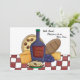 The table is set with all the delectable Italian foods, pizza, crusty bread, cheese, pasta and meatballs, vintage wine and fruit. A delightful invitation for a casual dinner party, wedding rehearsal, birthday party, shower or any event where Italian food will be served.