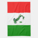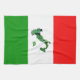 Add a taste of Italy to your kitchen with this towel featuring a green map of Italy, showing its regions, superimposed on the Italian flag.