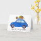 Italian Guarisci Presto Get well card. A Blue retro Fiat 500 in watercolor.