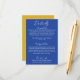 Simple and stylish retro colorful Blue and yellow wedding guest info details card. As you see it has blue background and cream hand written whimsical text layout. And yellow background on the back . All the info are customizable as website, transportation, accommodation . Grab it along with other products from this classy hand made retro wedding suite.
