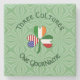This shamrock celebrates the holidays of three countries: Italy, Ireland (like St. Patrick's Day), and USA (like Independence Day or July 4th). A different flag is in each leaf. You will see the Italian flag, Irish flag, and the flag of the United States of America. Above the shamrock reads THREE CULTURES. Below, it reads ONE YOURNAME. Add your name in the correct place to personalize. To make a customized gift, add someone else's name. Words appear in dark green, Celtic style, circular letters. All of it sits on a background of light green squiggly squares.