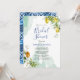 Italian lemon blue floral script bridal shower invitation