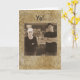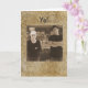 Funny card with a man and a women posing like they belong in the Italian mafia, with a liquor bar background. Photo is done in sepia. Front of card reads Yo.