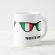 I was looking for a cheerful, vibrantly coloured, fun, extra large , MCM designed mug for my first coffee of the day. This fits the bill! The print is purrfect and the colours are SO vibrant. The design definitely gives a true MCM vibe. The placement of the art is the only negative for me. I would prefer the main image be on opposite sides of the mug, rather than placed so close together, and not able to be seen by the drinker (me!) or the person opposite me (if there is one :-).