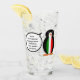 Celebrate wildlife with a glass featuring globe trotting Ms. Penguin dressed in her Italian Flag vest. She loves to attend celebrations for Penguin Awareness Day, World Penguin Day, as well as birthdays and cultural events. She makes a lovely housewarming gift for the home bar, too. Add your words to her talk bubble.