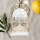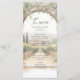 Featuring a soft watercolor landscape framed by a graceful stone arch and trailing greenery, this menu design adds a refined, destination-wedding feel to your reception tables. The clean typography keeps courses easy to read while maintaining a sophisticated, luxury aesthetic.