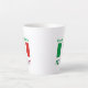 Personalized latte mug featuring the green, white and red Italian flag or Il Tricolore. Below is the word ITALY, also in the Italian tricolor. Above is a place for your name, in green letters, to add a customized look. Or, create a personalized gift by adding some else's name. Great to use at family reunions, travel groups, and clubs.