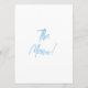 A vintage retro funky modern blue and white wedding dinner menu. Which features chic template design of white background and blue hand written typography. With Hand drawn table set of wine bottle and glasses and a dish and a fork. A Perfect and matching with the whole suite.