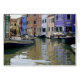 Boats bob on the water in colourful Burano, Italy outside of Venice.
