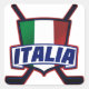 Cool & colourful design in blue, red, green and white, for ice hockey fans and players! This is an Italian flag in a shield, with a scroll across it with the text 'ITALIA' inside, and crossed hockey sticks behind the shield.