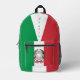 Patriotic Italian backpack featuring Italian Flag & Italy colours with easily customized name. Your perfect school / university bag or simply travel, holiday, sports team backpack for patriots.