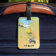 Italy Travel poster. featuring a map , plane and light aircraft flying around the nation.