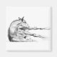 A black and white BIRO illustration of a young foal lying down, then realizes it needs to reach an itch on its back leg. By the BIRO Artist ~ Robin Cox.