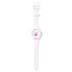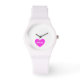 I had two concerns when ordering this watch - one that the watchband didn't look that glittery and two that the dial would be too large. Neither was a problem at all. The watch band is nice and glittery for a touch of bling. As to the size, I have small bones so I tend to like smaller looking accessories and I am quite comfortable with this. Neither too large or too small. The outside edge to edge on the dial is 1 1/4" the inside image is 1 inch.