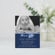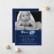 Stylish custom photo baby birth announcement done in dark blue, with a light blue edge, at the top, and fun colourful graphic text reading It's a Baby Boy. Add your baby's photo to the top of the announcement and personalize the white text, with your baby's birth information. Sweet and stylish way to announce the arrival of your baby boy, to the world.
