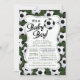 Modern bold & bright sport baby shower invitation featuring a cute soccer ball. Our It's a baby boy soccer invite is set on a cute grass pattern background and has a matching back for an extra special touch. Perfect for a little all star boys baby shower