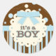 It's a Boy All in Blue Stitches & Bow Baby Shower Classic Round Sticker