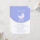 A sweet baby shower invitation, in blue and white, with a scalloped overlap that features a baby carriage and hearts. The card is easy to customize with your wording, font, font colour, paper shape options and choice of six paper types.