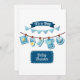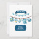 This invitation feature the words "It's A Boy Baby Shower" in a unique print font with white letters blue background with clothes on a line in this baby boy theme and style. Printed on a classic, all around paper 17.5 pt thickness with an uncoated matte finish with an eggshell texture made and printed in the USA with "It's A Boy" printed on the back.