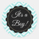 "Its a boy!" baby shower stickers for birth announcements or baby shower invitations. Blue chevron stripes, aqua teal coloured.