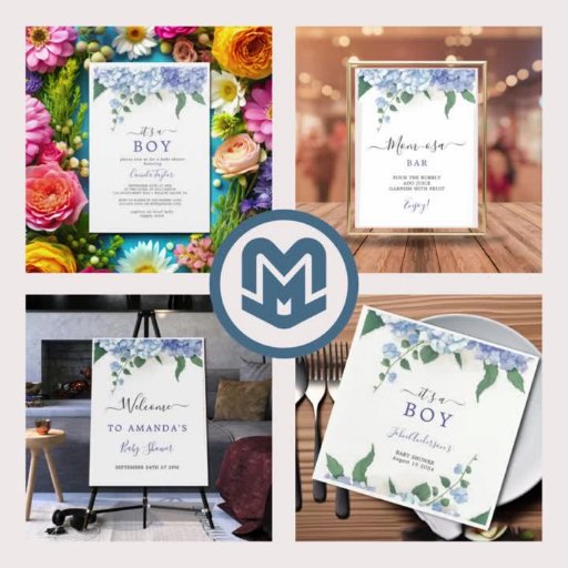 It's A Boy Blue Hydrangea Botanical Baby ShowerDesigned by Max Marshall
