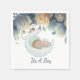 Its A Boy Blue Roses Floral Decorative Baby Napkins peaceful sleeping baby in this charming invitation, perfect for welcoming your little prince. This design features a delicate watercolor illustration of a baby boy resting on a soft, fluffy cloud, framed by a lush arrangement of midnight blue and champagne gold roses.