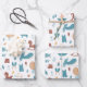Cute blue baby shower pattern wrapping paper sheets for boy.