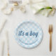 It's a Boy Gingham Baby Shower Paper Plate