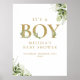 It's a boy baby shower welcome sign featuring elegant gold typography and pretty botanical greenery foliage. Designed by Thisisnotme©