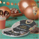 It was all a Dream... Kick it Ole School with1990's Hip Hop Throwback Baby Shower! It's a Lil Hip Hop Prince! Cute black bodysuit with fly gold chain, chequered sneakers with a blue and gold microphone on a graffiti brick background and blue wording.