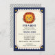 Adorable navy blue, red and ivory lion design "it's a boy" baby shower invitation. Reverse side of invitation is coordinating ivory and navy blue diagonal stripe design. Use these invitations to reveal the gender of the baby and invite family and friends to shower the mom-to-be with love, support and cute gifts. Text is fully customizable, text font and ink colour can be changed by using the customize it feature. Please contact me if you need assistance with the template.