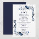 Its A Boy Navy Blue Elegant Floral Baby Shower Invitation