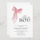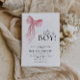 Celebrate the arrival of a baby boy with this elegant and charming baby shower invitation! Featuring a soft pastel design with a delicate pink bow, this invitation adds a touch of sweetness to your special event. Perfect for parents who love a mix of classic blue and subtle pink hues.