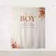 It's a boy baby shower photo booth backdrop featuring elegant terracotta typography and rustic floral foliage. Designed by Thisisnotme©
