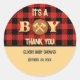 It's a boy Rustic Lumberjack Flannel Baby Shower I Classic Round Sticker