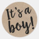 It's A Boy Trendy Script on Kraft Style Classic Round Sticker