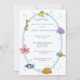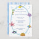 This adorable baby shower invitation features charming underwater creatures on the front, while the back showcases complementary blue watercolor stripes. The design incorporates a blend of serif and sans-serif typography for a modern and stylish look. To customize the invitation, simply click on "personalize this design" and enter your details. Zazzle will handle the rest. Additional matching items are also available.