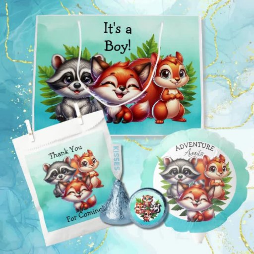 It's a boy baby shower paper napkins. Adorable for a woodland creatures or forest animals themed boy's baby shower or for family waiting when a baby is born. Cute cartoon skunk, owl, chipmunk and baby deer.