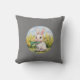 This is a pillow with a cute rabbit sitting on it.