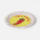 Cute chili pepper in cartoon style saying "It's a fiesta!".