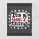 "It's A Gen Y Thing" is a cute text design in grey with black and red text, along with a white accent shape and white textured whimsical dots surrounding it.