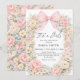 Celebrate the arrival of a sweet little girl with this elegant blush pink bow floral baby shower invitation. The design features a romantic arrangement of soft peonies, delicate pastel flowers, and airy greenery, beautifully framed with a luxurious satin bow and flowing ribbon. The soft watercolor style and feminine color palette create a timeless and sophisticated look, perfect for a memorable baby shower celebration. Matching items available.