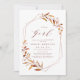 Modern fall greenery it's a Girl baby shower invitation featured rustic watercolor botanical foliage greenery and faux copper foil leaves and geometric frame, simple and elegant.