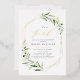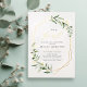 Modern greenery it's a Girl baby shower invitation featured rustic watercolor botanical foliage greenery and real gold foil leaves and geometric frame, simple and elegant.