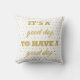 Perfect for dorm rooms and bedrooms, this inspirational pillow features a white background with silver and gold polka dots and an inspirational quote in faux gold glitter.