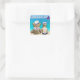 Adorable nautical themed, "It's a boy" baby shower invitation or candy favour bag stickers. A cute little baby boy sitting on the beach with his teddy bear in sailor gear with a sail boat in the back ground.