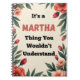 This fun and personalized notebook is made for anyone who proudly owns their name and their personality. Featuring the popular “It’s a Martha Thing You Wouldn’t Understand” phrase, this notebook makes a playful statement while staying practical for everyday use.