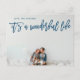 It's a Wonderful Life Holidays Photo Postcard Script in Navy Ice Blue lettering. back has a pretty floral border. Lettering style. Big photo design. Happy, festive design. Its a wonderful life. flowers. red and white. floral frame.