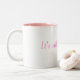 The cups were exactly what I expected them to be, it has sturdy handle and is perfect size for enjoying hot cup of coffee. Loved the two tones, black on the inside keeps the cup looking clean and new. I was very satisfied with the logo and the lettering. It was exactly as I expected it to be. Loved that I could personalize the cups with their names and wedding date. Wish I had made their names a little bigger but all in all I am very happy with them. I wish I could upload a picture but I already have them wrapped up for a gift.