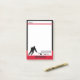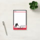 For sports lovers and hockey fans everywhere It's always time for Hockey with 4" X 6" Post-it® Note pad. This new design it an updated version of the original, "It's All Fun & Games until Somebody Looses A Tooth..THEN IT'S HOCKEY". This sporty design has the silhouette of a hockey player. The background colours, red and black shown here, can be customized to the colours of your favourite team. You can also add a personal touch by adding a name.